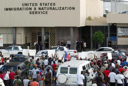 Haitian refugees during a news conference at the corner of 54th street and North Miami Ave