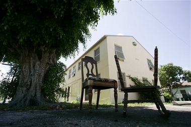 | AP Photo Old chairs, where residents sit outside the Dunbar Village apartment, in West Palm Beach, Fla. sit unused Monday, July 9, 2007, in front of the building where a woman was gang-raped. One woman said "So a lady was raped, big deal." |