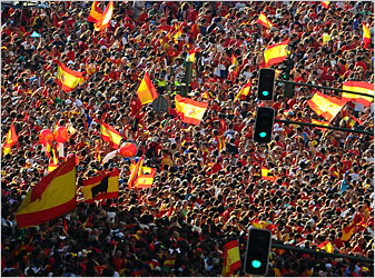 | A crowd filled the streets of Madrid to celebrate the World Cup. | ||