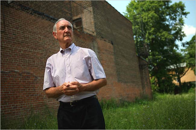 | Paul Zigo, a former National Guardman, in front of a building where he was nearly shot. They were "the most tense and fearful days of our lives," he said. | ||||||||||||||||||